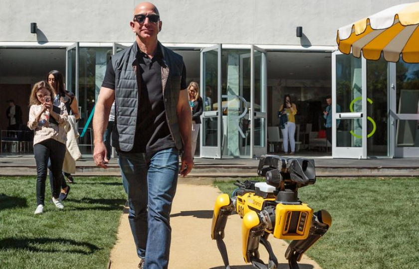 نشر بيزوس في تغريدةٍ على موقع تويتر في العام الماضي 2018 صورة له، يظهر فيها وهو يسير إلى جانب «كلب روبوتي».