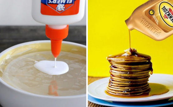 1- عندما تشاهد إعلانات البان كيك والشراب ينسكب عليها بطريقة مدهشة لتبدو شهية للغاية، فتذكر أن البان كيك يمتص الشراب، لذلك تستخدم الشركات زيت المحركات بدلاً من الشراب ليبقى في الأعلى.