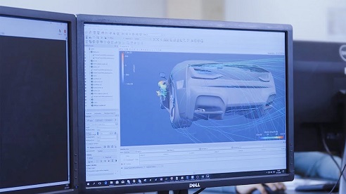 عقب الرسوم التخطيطية يبدأ الفريق بنقل الأفكار إلى الكومبيوتر وتصميم كل جانب من السيارة بدايةً من الرسومات على لوحة العدادات وشاشة المعلومات الترفيهية إلى أنظمة التهوية والتبريد.
