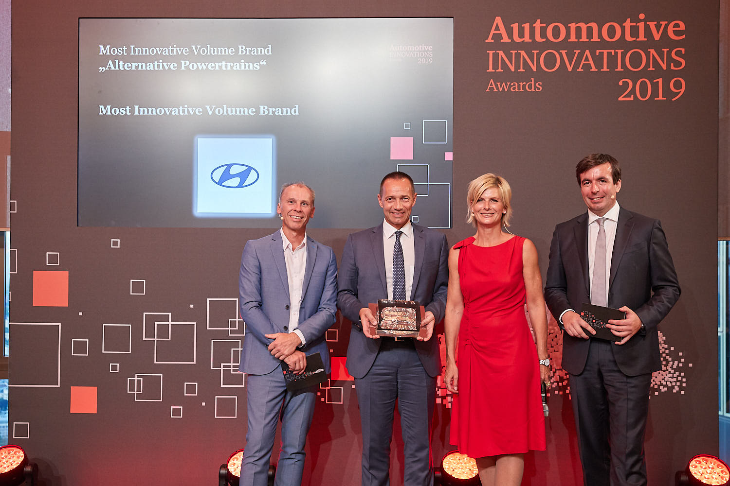 وبهذه المناسبة، أكّد يورغن كيلر المدير التنفيذي لهيونداي موتور ألمانيا، التزام الشركة الراسخ بالاستدامة. وأشار المسؤول الذي تسلّم الجائزتين إلى أن هيونداي "أتبعت وعودها بالأفعال التي أدّت إلى تحقيق العديد من الابتكارات"، وقال: "أصبحت هيونداي حالياً الصانعة الوحيدة في العالم التي تقدّم جميع الأشكال المهمة لنظم القيادة البديلة في مركباتها التي تجري إنتاجها على نطاق تجاري، وهذه تشمل: المركبات الكهربائية بالكامل، والهجينة، والهجينة العاملة بجهد خفيف قدره 48 فولتاً، والهجينة القابلة للشحن بالقابس الكهربائي، والمركبات العاملة بخلايا وقود الهيدروجين".
