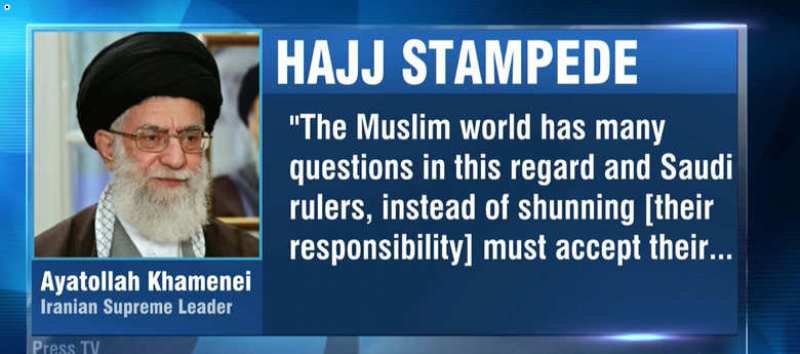 وتابع خامنئي بحسب ما نقلته وكالة أنباء "فارس" الإيرانية، شبه الرسمية: "للعالم الاسلامي الكثير من التساؤلات بهذا الصدد وينبغي على حكام السعودية بدلا من توجيه الاتهامات للآخرين، الاعتذار من العالم الاسلامي والاسر المفجوعة وتحمل مسؤوليتهم الجسيمة في هذا الحادث والعمل بمقتضياتها."