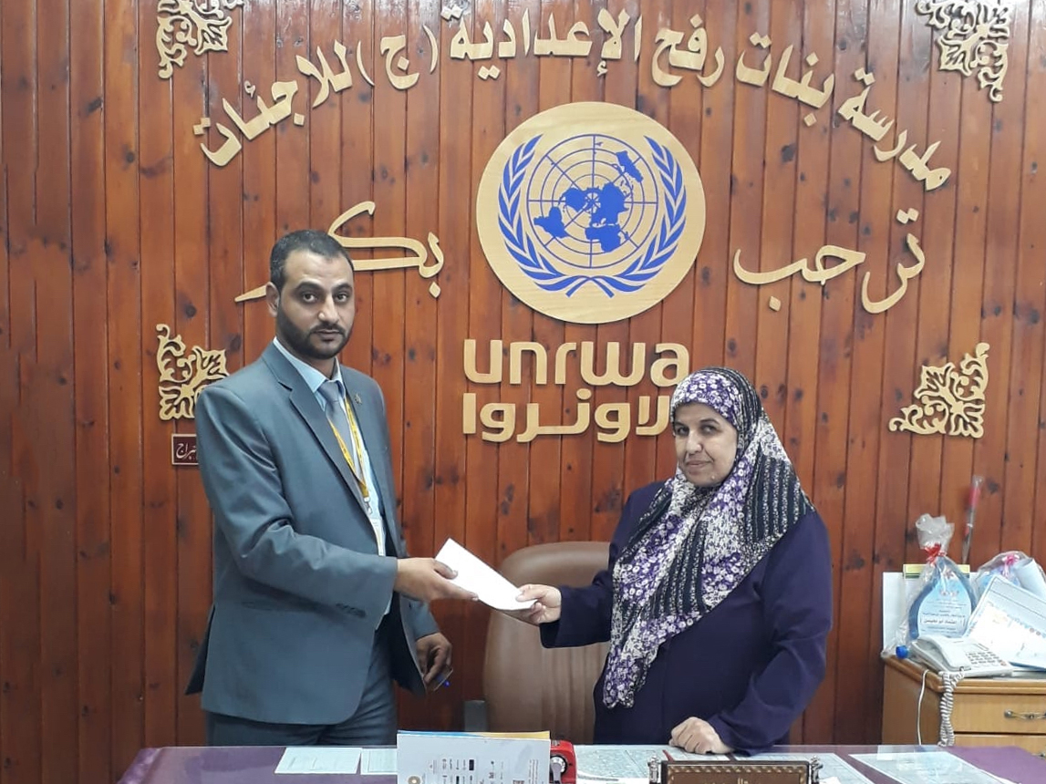 رفح - الاقتصادي - قدم البنك الإسلامي الفلسطيني دعما نقديا وعينيا لمدرستي بنات تل السلطان الإعدادية وبنات رفح الإعدادية ج للاجئات في مدينة رفح جنوب قطاع غزة.