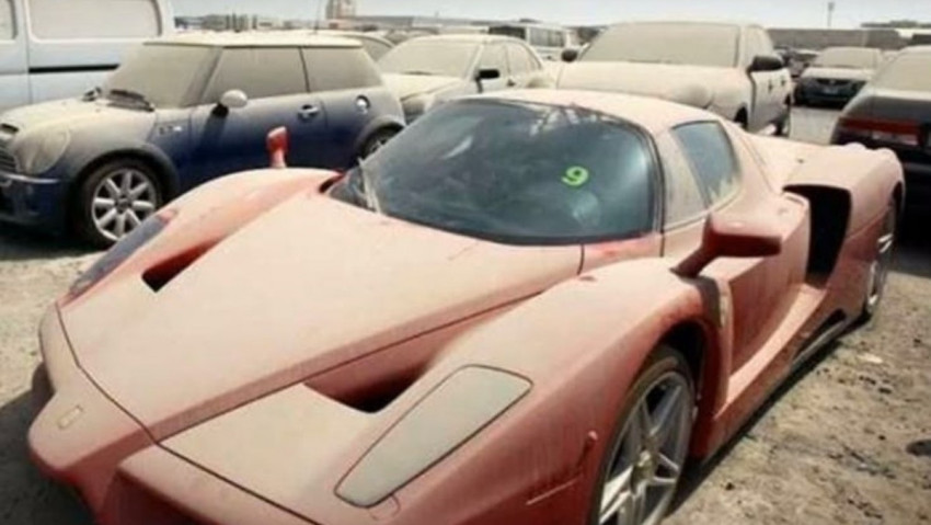فيراري إنزو الحمراء هي أكثر سيارة شهرة هُجرت في دبي، حيث أنها هدف لأي جامع سيارات كونه لم تصنع سوى 350 نسخة منها في العالم بسعر لا يقل عن 650,000$.