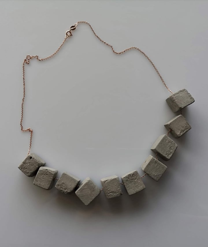 وأضافت بأنه بعد شغفها بالاسمنت واستمتاعها به، أرادت استخدامه بطريقة مختلفة، فأنتجته على شكل اكسسوارات تستخدم لتزيين البيوت أو مجوهرات غير مألوفة بأفكار جديدة.