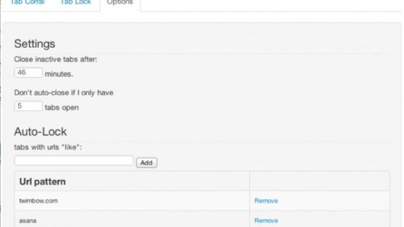 وتوفّر الإضافة العديد من الخيارات المفيدة، فيمكن تحديد المدّة الزمنية التي يجب بها إغلاق الصفحات المفتوحة في حال تجاوزها هذه المدّة دون وجود أي نشاط عليها، كما يمكن حماية صفحات أخرى من مواقع محددة لا تخضع لهذه الإضافة ولا يتم إغلاقها أبدًا، والعديد من الخيارات الأخرى المفيدة.