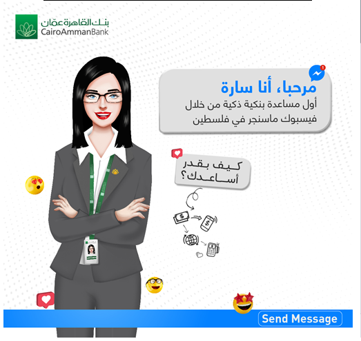 وسيطلق البنك خلال الفترة القريبة المقبلة، مجموعة من المواد الإعلامية، لتكون مرشدا لعملائه في إتمام عملية التسجيل، تمهيدا للتمتع بطلب الخدمات التي تقدمها "سارة" على فيسبوك مسنجر، للبنك، عبر الصفحة: Cairo Amman Bank –Palestine.