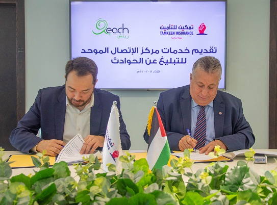 رام الله - الاقتصادي - وقعت شركة تمكين للتأمين ممثلة بمحمد الريماوي مديرها العام، وشركة ريتش احدى شركات مجموعة الاتصالات الفلسطينية ممثلة بهشام زيد مدير عام الشركة، اتفاقية تقديم خدمات مركز الاتصال الموحد الخاص بالتبليغ عن الحوادث الطارئة.