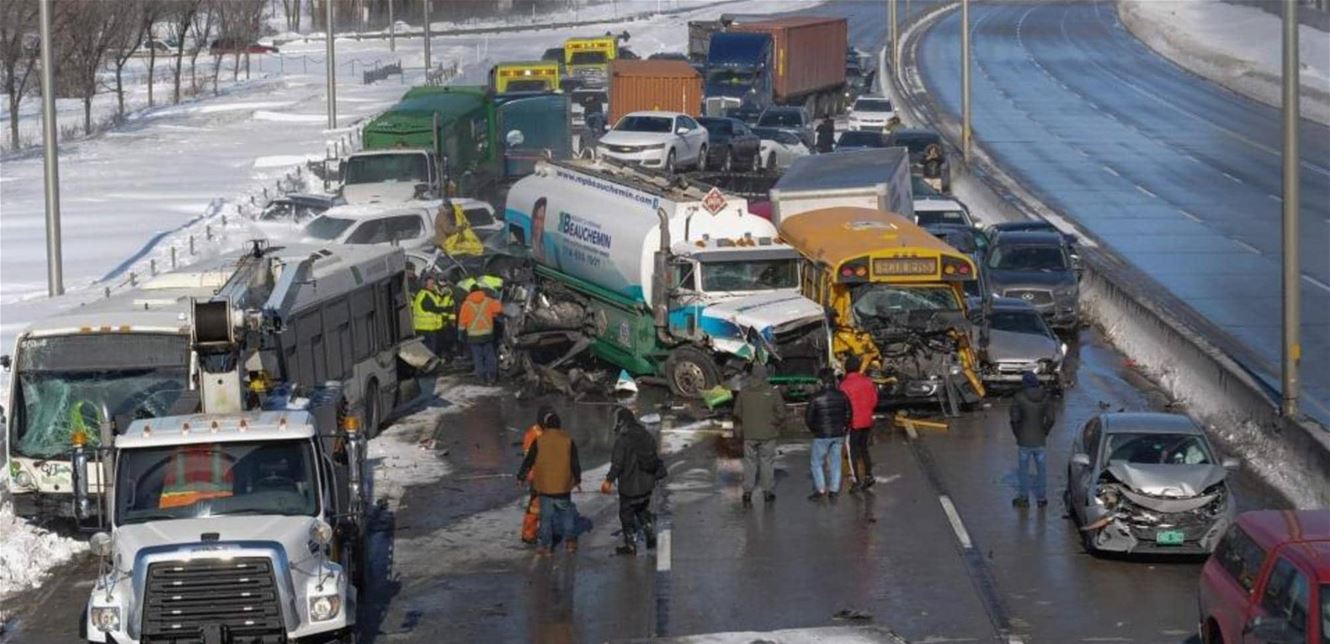 وكالات - الاقتصادي - وقع حادثُ سيرٍ ضخم في مدينة مونتريال الكندية، بين أكثر من 200 مركبة تسبّب بإصابة ما لا يقلّ عن 60 شخصاً بعضهم بحالة خطيرة، فيما أفادت تقارير إخبارية عن سقوط قتيلَيْن بالحادث.