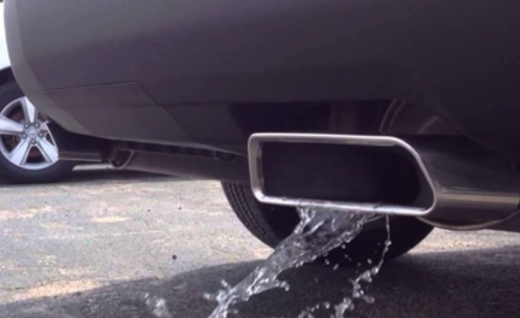 ينتج عن عملية الاحتراق الداخلي في المحرك بين الوقود والهواء مجموعة من الغازات مثل بخار الماء والنيتروجين وثاني أكسيد الكربون، وعند إيقاف تشغيل المحرك يتكاثف هذا البخار داخل أنابيب العادم ليخرج صباح اليوم التالي كماء سائل، لكنه يتوقف خلال دقيقتين بمجرد أن يتم تسخين السيارة.