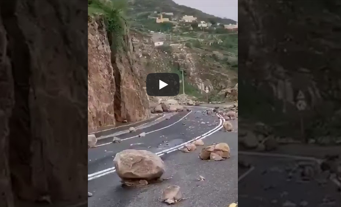 وكالات - الاقتصادي - تساقطت صخور عملاقة من قمم جبل "الجذم" في جبال "العبادل" بمحافظة العارضة شرقي منطقة جازان السعودية، وتسبّبت في سحق مركبة كانت متوقفة على جانب الطريق، في مشهد يمكن وصفه بـ"المخيف".
