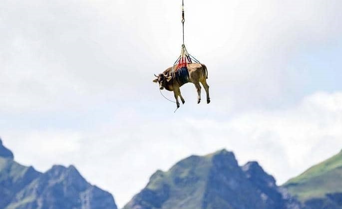 وقال أمبروس أرنولد، وهو أحد الرعاة المشاركين في العملية، لصحيفة "ليماتالير زيتونغ" السويسرية، إن نقل البقرة المصابة بهذه الطريقة كان "اختصارا فعالا".
