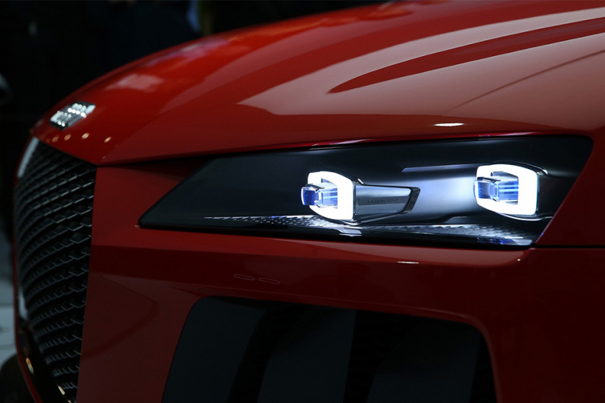 ولكن ما يحدث هو أنه مع كل كشاف إضاءة داخل المصابيح الأمامية، يوجد 3 أشعة ليزر زرقاء خلفية توجه أشعتها نحو مرايا قرب مقدمة المصابيح.