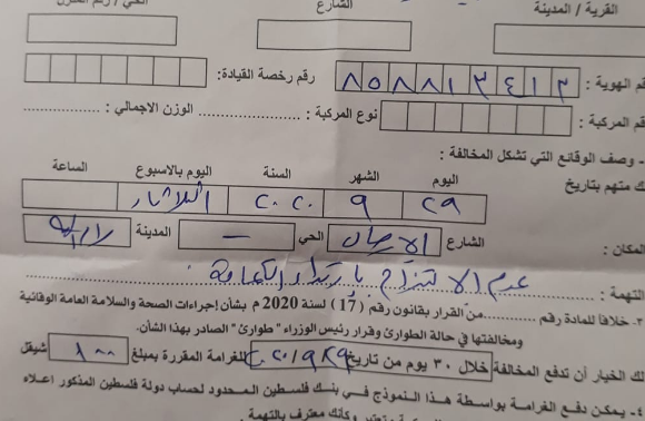 - عدم الزام العاملين والسائقين فيها على ارتداء الكمامة والقفازات 250 شيقلا