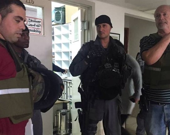 وذكر أحد الموظفين في مستشفى المقاصد أن أفراد من الوحدات الخاصة "مقنعين" اقتحموا قسم الطوارئ والإدارة في مستشفى المقاصد بقرية الطور، وانتشروا في ممراته، وطالبوا بملف أحد المصابين بدعوى تلقيه العلاج في المستشفى قبل عدة أيام.