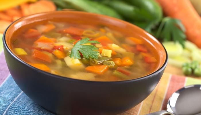 ينصح بالتركيز علي شوربة الخضروات ، فهي تعمل علي تزويد الجسم بعدد كبير من الفيتامينات و المعادن التي يحتاجها الجسم . بالإضافة إلي الألياف الضرورية لصحة الجهاز الهضمي . و لا تمد الجسم بالسعرات الحرارية .
