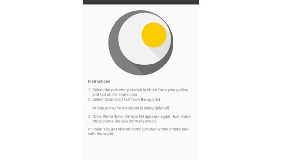 ويمكن لتطبيق Scrambled Exif، الذي يعمل مع نظام التشغيل جوجل أندرويد، حل هذه المشكلة. فعند الرغبة في مشاركة صورة يتم النقر فوق رمز المشاركة كالمعتاد، ثم يتم تحديد التطبيق، والذي يقوم بمسح البيانات الوصفية بسرعة ويعرض مربع حوار المشاركة مرة أخرى بحيث يمكن النقر فوق التطبيق، الذي ينبغي أن تنتقل إليه الصورة بالفعل.
