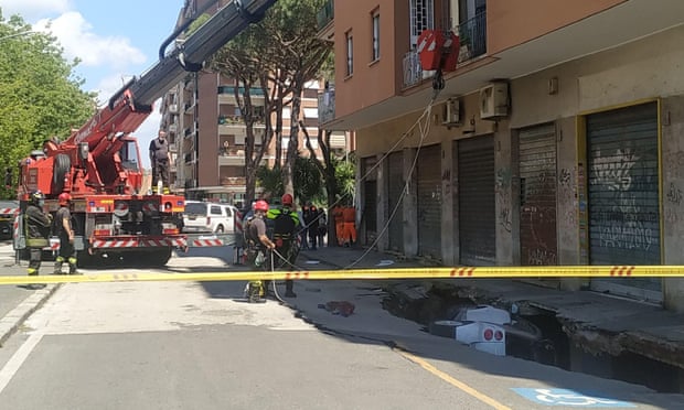 ولم يصب أحد في الحادث الذي يعتقد أنه نجم عن تسرب مياه في مرآب أسفل الشارع، بحسب تقارير وردت في وسائل إعلام إيطالية.
