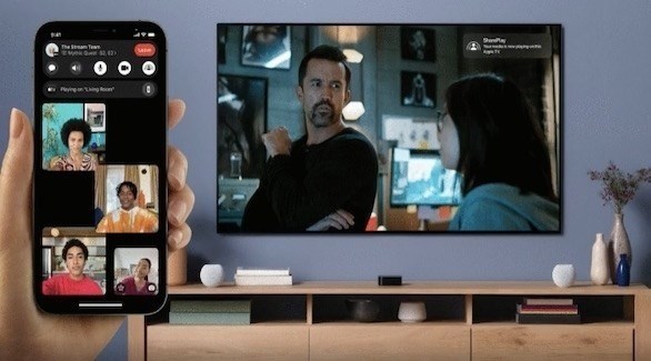 عند بث الأفلام أو البرامج التلفزيونية مع الأصدقاء، يُزامن المحتوى عبر الأجهزة للسماح للطرفين بالوصول إلى عناصر التحكم. ولاستخدام شير بلاي، يحتاج الطرفان إلى استخدام فيس تايم على آبل يدعم iOS 15 أو iPadOS 15 أو MacOS Monterey.