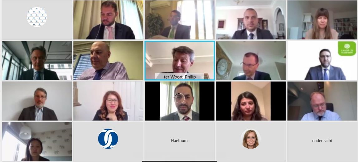 جرى بروتوكل الإتفافية  عبر المنصة البصرية (WebEx) بحضور نائب رئيس مجلس إدارة بنك القدس دريد أكرم جراب وعضو مجلس الإدارة هيثم البطيخي والرئيس التنفيذي لبنك القدس صلاح هدمي، وآلان بيلو نائب رئيس البنك الأوروبي لإعادة الإعمار والتنمية للخدمات المصرفية  وفرانيسس مليج المدير التنفيذي للمؤسسات المالية.