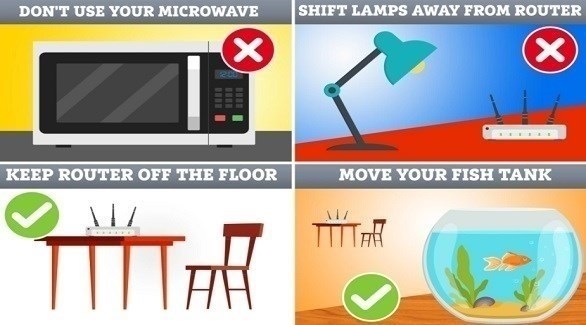 يمكن لتحريك المصابيح والأدوات الأخرى بعيدًا عن جهاز الراوتر أن يحسن من قوة الإشارة، ويتعلق الأمر كله بموجات الإشعاع (غير الضارة) المستخدمة لإطلاق شبكة واي فاي حول منزلك.