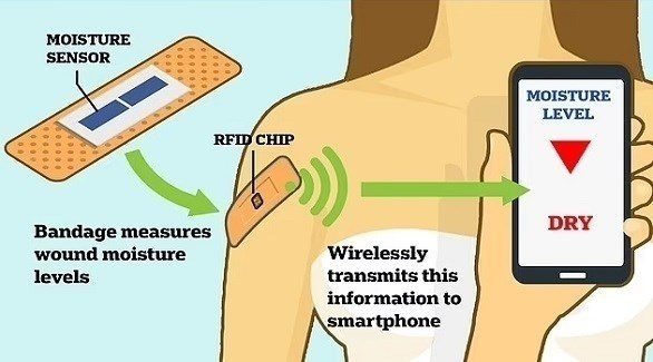 وتحتوي "الضمادة الذكية" على مستشعر يقيس مستويات رطوبة الجرح ثم ينقل البيانات إلى هاتف ذكي قريب، باستخدام شريحة تحديد التردد اللاسلكي. وهناك العديد من العوامل التي يمكن أن تؤثر على شفاء الجرح، مثل درجة الحرارة ومستويات الجلوكوز والحموضة والأهم الرطوبة.