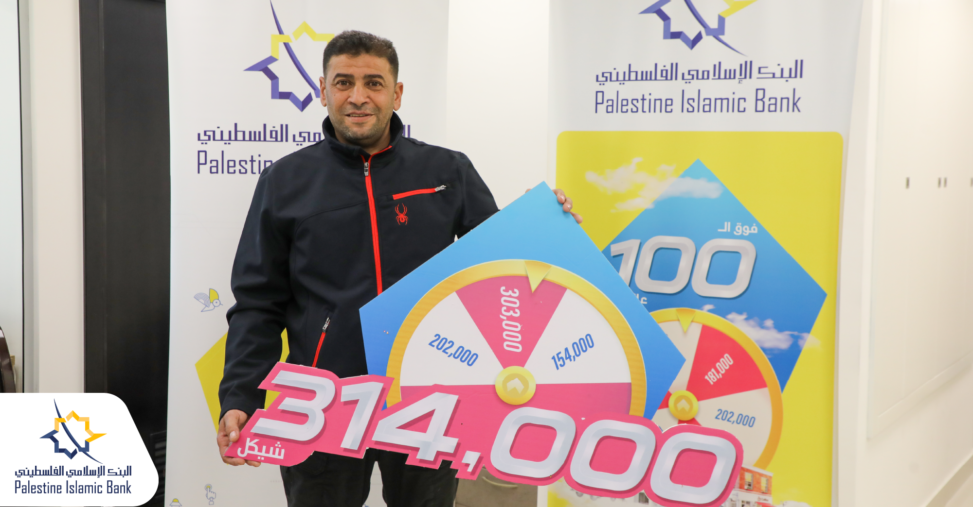 رام الله - الاقتصادي - سلم البنك الإسلامي الفلسطيني الجائزة النقدية السادسة لحملة حسابات التوفير "فوق الـ 100.. عالأكيد.. كل مرة رقم جديد" وقيمتها 314,000 شيكل للفائز يوسف علي حسين برادعية من محافظة الخليل.