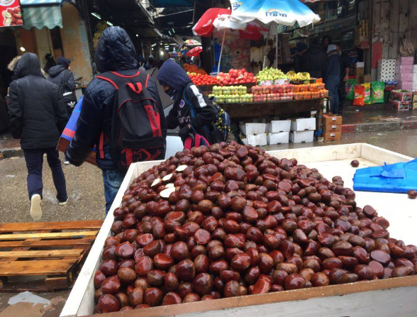 يقول احمد ابو عيدة صاحب بسطة خضروات امام سوق الخضار المركزي في مدينة البيرة، إن الاقبال على "الكستناء" يزداد مع أول منخفض جوي يدخل سماء فلسطين.