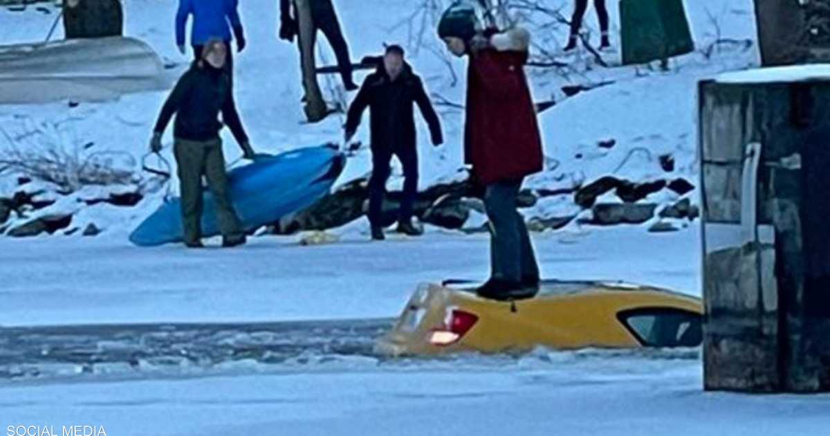 كانت سيارة تقودها امرأة تسير فوق نهر متجمد في كندا، وفي الأثناء، وقع أسوأ ما يمكن توقعه، حيث تحطم الجليد وغاصت السيارة في مياه النهر الباردة للغاية.