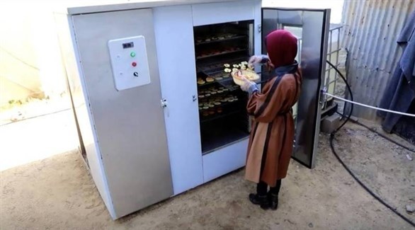 تشرح هنادي طريقة تشغيل الجهاز. وتقول "طبعاً الجهاز بيجفف الفواكه والخضراوات والأعشاب، زي ما إحنا شايفين هنا فرسمونه، وتفاح وبرتقال، باضبط درجة الحرارة والرطوبة والوقت اللازم لتشغيل الجهاز. وبعد 16 ساعة 20 ساعة بيتم تجفيفهم، وباحصل عليهم وبغلفهم وببيعهم".