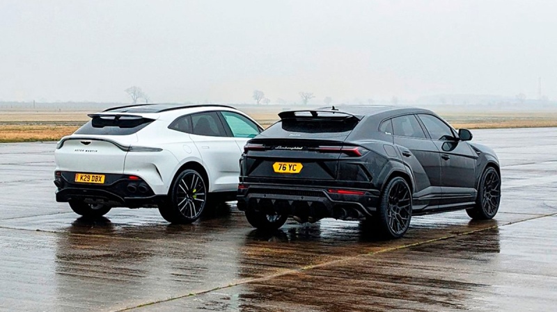 نتيجة سباق الربع ميل: 11.7 ثانية لأستون مارتن و12 ثانية لامبورجيني. في سباق الدحرجة، حاولت اوروس مواكبة دي بي اكس، ميزة القدرة الحصانية لهذه الأخيرة تعني أن لامبورجيني ظلت في المركز الأخير، لتثبت دي بي اكس 707 إنها هي أسرع اس يو في فخمة في العالم.
