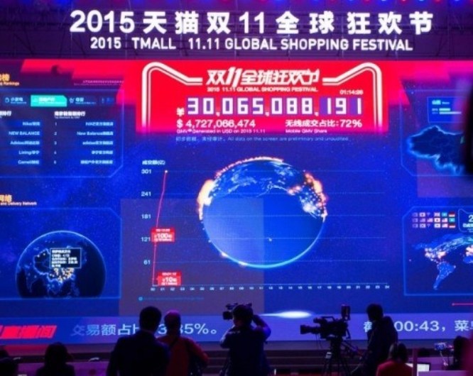 تكسر مبيعات عملاقة التجارة عبر الإنترنت الصينية "علي بابا" في الـ 90 دقيقة الأولى من "يوم العُزب" في الصين - وهو يوم التسوّق الأكبر في العام في الدولة ذات عدد السكان الأكبر في العالم - الأرقام القياسية وتصل إلى أكثر من خمسة مليارات دولار.