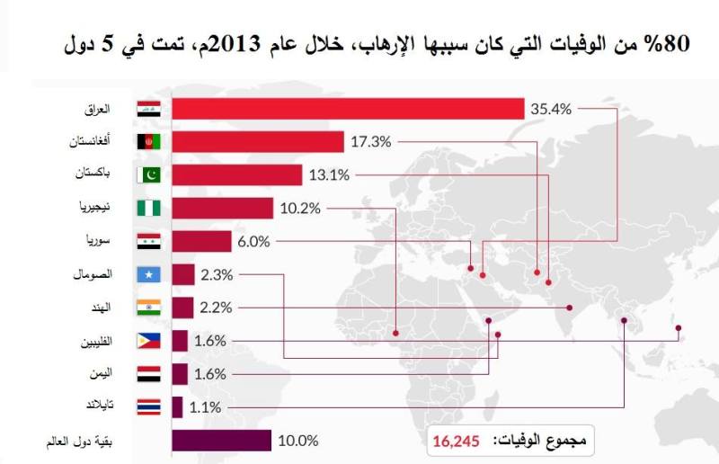 الدول الغربية هي الأكثر قلقًا حول ما يسمونه بـ"التطرف الإسلامي"، رغم أنه حسب ما جاء في إحصاءات عام 2013، فإن الدول التي شهدت أكبر حصيلة قتلى بسبب الإرهاب، هي دول غير أوروبية.