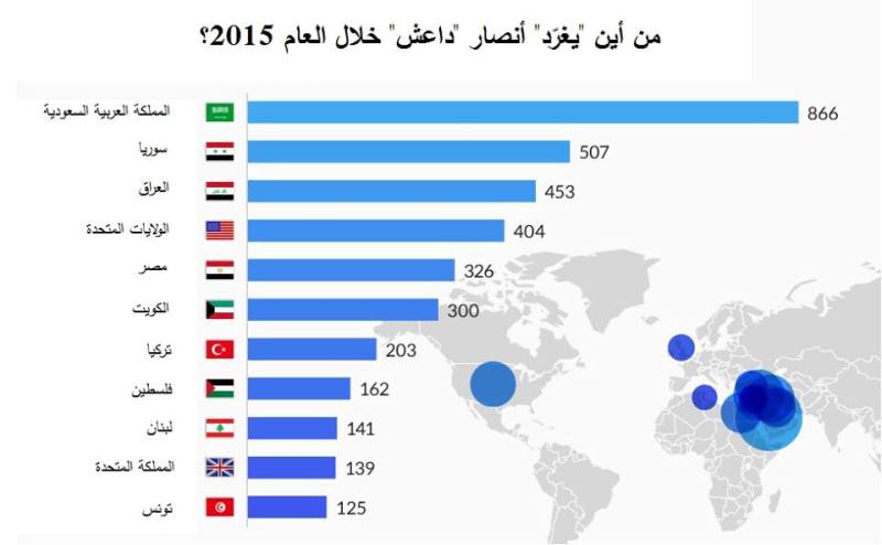ويؤكد التقرير أيضًا أن معظم مقاتلي تنظيم الدولة الغربيين يتدفقون من دول مثل فرنسا أو بريطانيا، وان أكبر عدد من المقاتلين يحملون الجنسية التونسية.