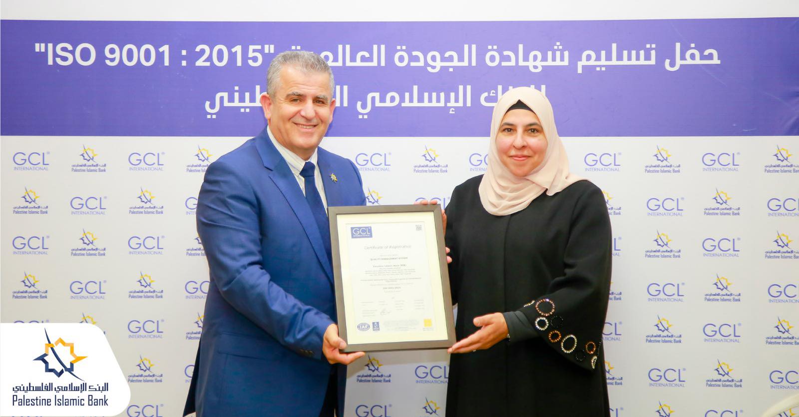 وتسلم مدير عام البنك الإسلامي الفلسطيني د. عماد السعدي الشهادة من قبل مدير عام شركة GCL-Palestine المهندسة شيرين السيد وذلك في مقر الإدارة العامة للبنك بمدينة رام الله بحضور الإدارة التنفيذية وعدد من مدراء الدوائر وممثلي وسائل الإعلام.