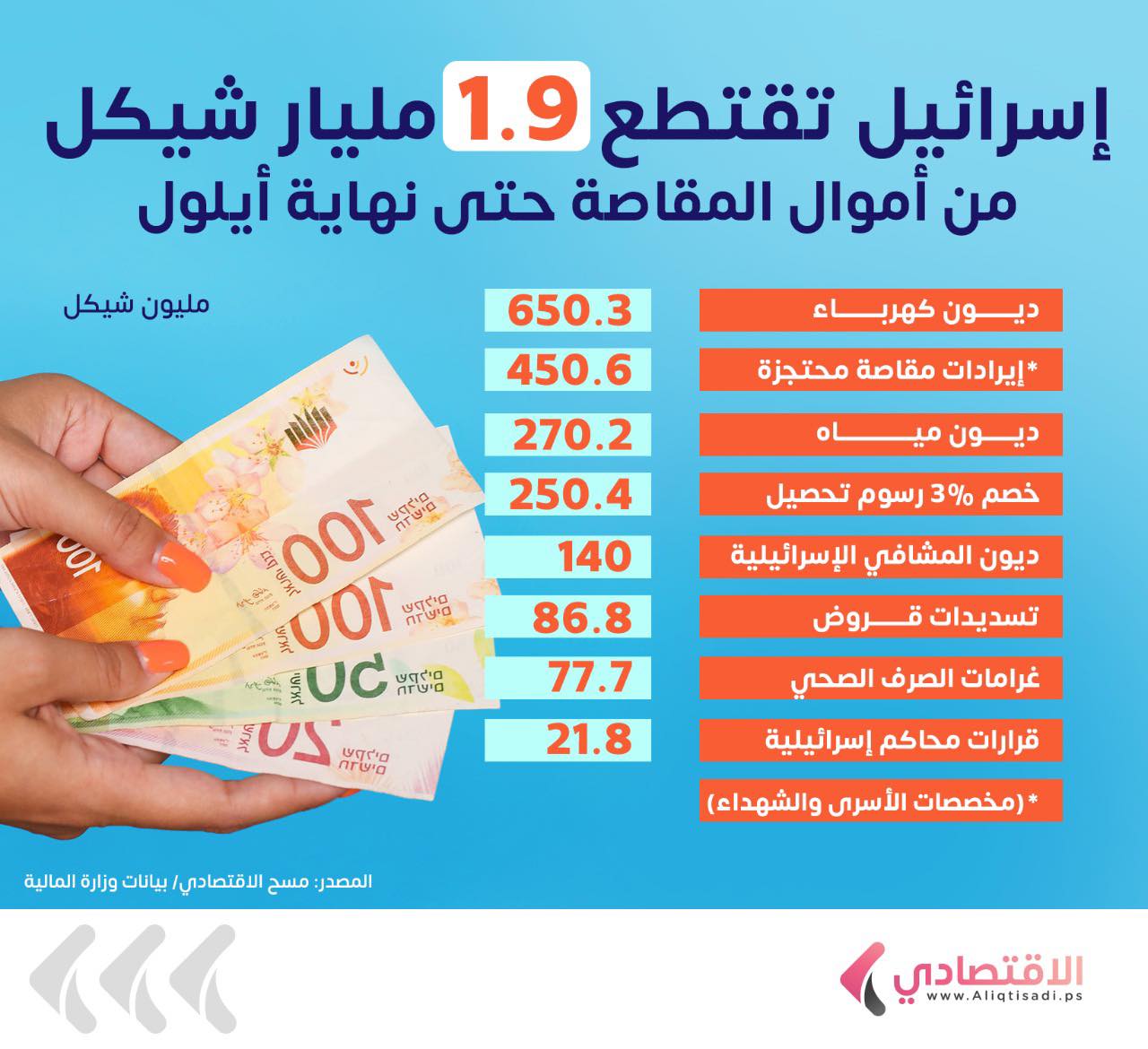 إسرائيل تقتطع 1.9 مليار شيكل من أموال المقاصة حتى نهاية أيلول
