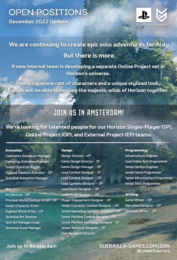 وكانت الشائعات تدور منذ العام الماضي بأن Guerrilla كانت تخطط لإطلاق لعبة Horizon متعددة اللاعبين، وقد أكد الاستوديو الآن على ذلك. وتركز سوني بشكل أكبر على ألعاب الخدمة المباشرة، وتخطط لإصدار 10 منها بحلول مارس (آذار) 2026، بما في ذلك نسخة متعددة اللاعبين من The Last of Us. ومع ذلك، ليس من الواضح حتى الآن كيف تتناسب لعبة Horizon عبر الإنترنت مع هذه الإستراتيجية.