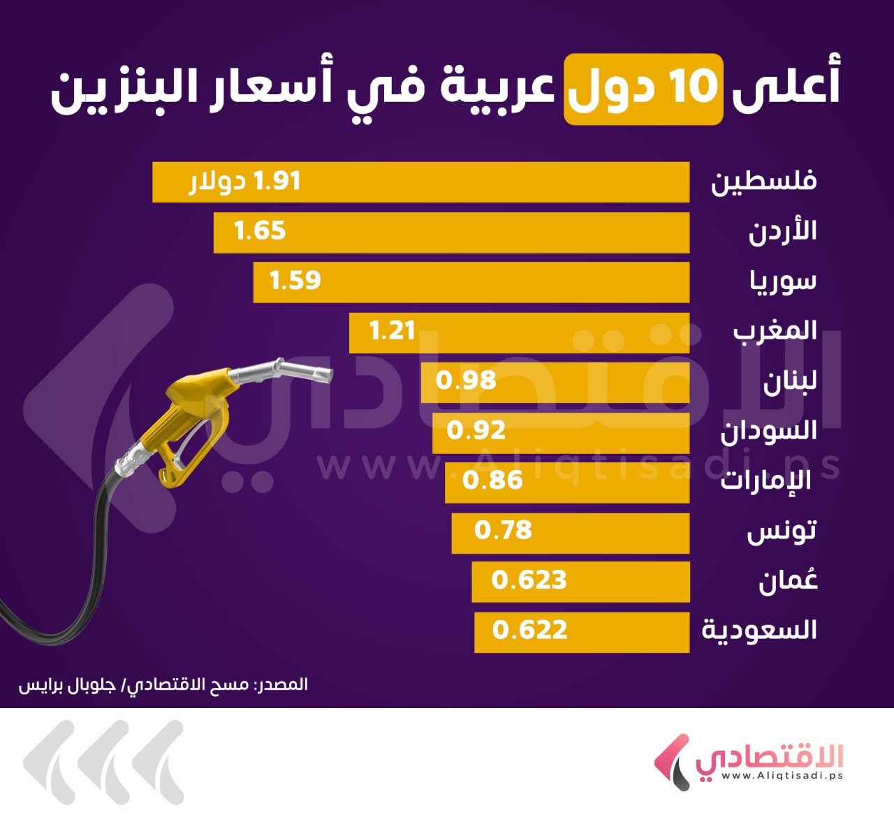 وبالنسبة للدول التي يباع فيها البنزين بسعر أعلى من السعر المدرج في الأراضي الفلسطينية فهي على النحو الآتي: