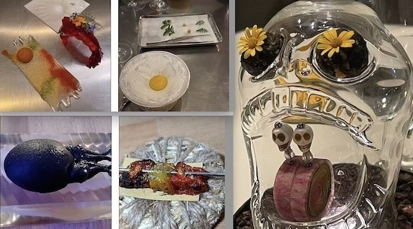 من بين الأطباق الأكثر غرابة، هناك طبق اسمه A Dog in Search of Gold، والذي يتم تقديمه على جهاز آيباد. الطبق مصنوع من الكستناء المقرمش والكرفس والبورسيني والريكوتا مع مسحوق البورسيني.