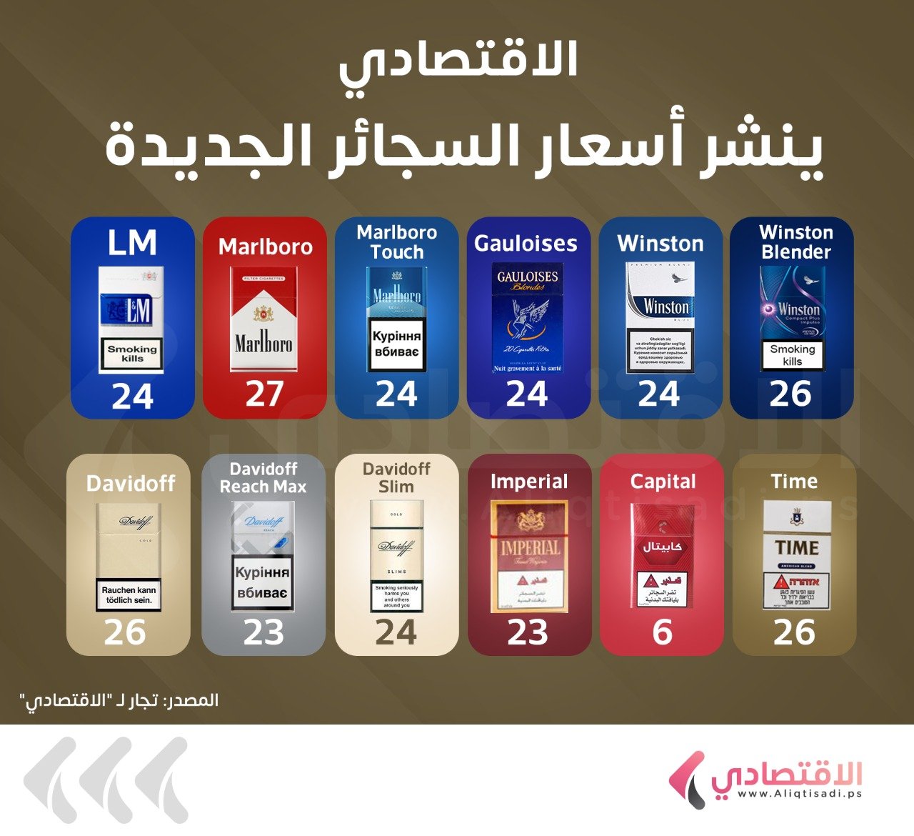 وهذه قائمة الأسعار الجديدة للسجائر: