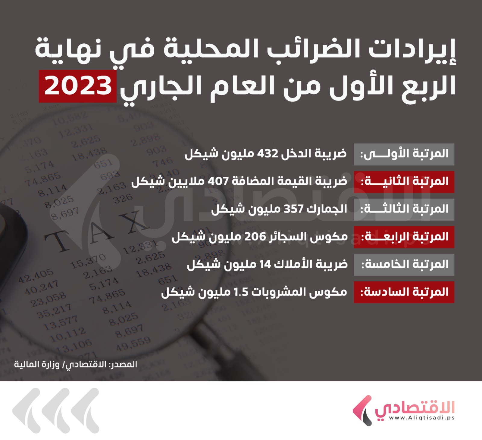 1.41 مليار شيكل إيرادات الضرائب المحلية في 3 أشهر
