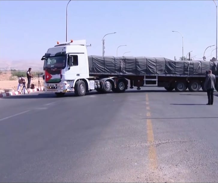 ويأتي ذلك تنفيذاً لقرار مجلس الوزراء الأردني تخصيص 45 ألف طن من القمح والحبوب، و7 شاحنات من الأدوية والاحتياجات والمعدات الطبية والدوائية للضفة الغربية.