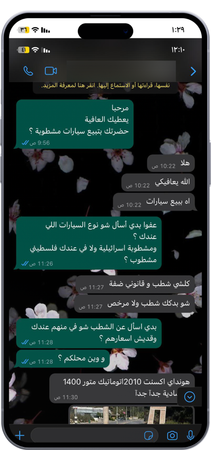 المكالمة بينه وبين مالك سيارة "إسرائيلية"