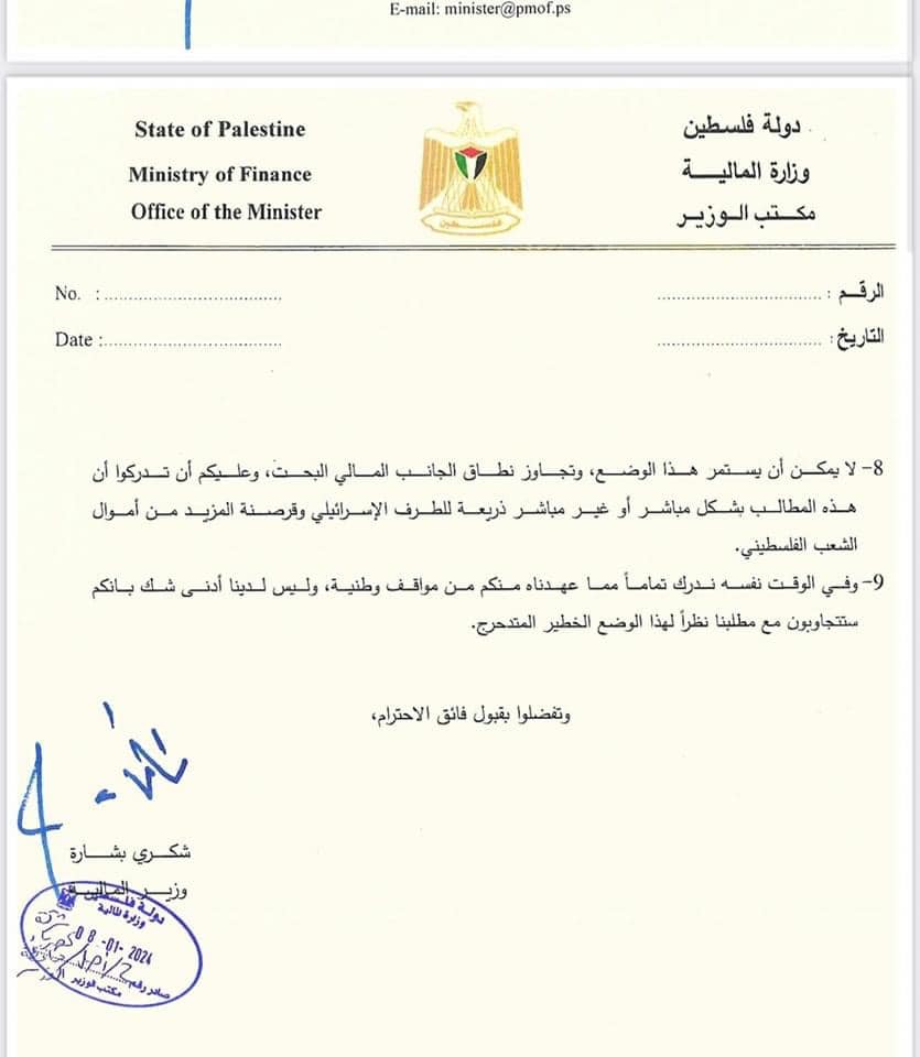 ليس هذا فحسب، بل طالبت المالية شركة الكهرباء بتسديد 150 مليون شيكل للحكومة، وهي الفارق بين مجموع الاستهلاك الحكومي وما تم اقتطاعه من قبل إسرائيل من أموال المقاصة في ملف الكهرباء بقيمة 220 مليون شيكل.