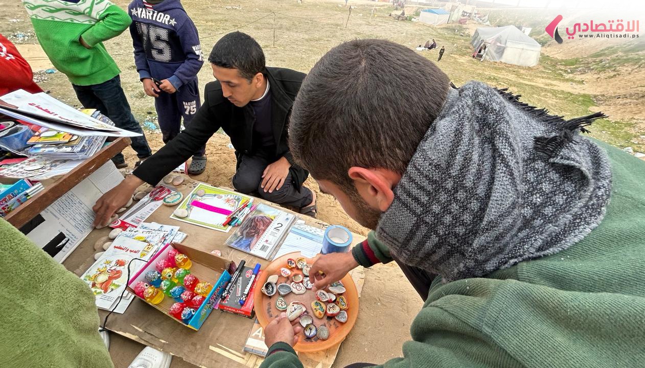 الاقتصادي- جنوب قطاع غزة - محمد سليمان- يستأنف شبان كانوا يمتهنون حرفة الرسم والكتابة بالخط العربي قبل الحرب والنزوح أعمالهم بوسائل مختلفة، في محاولة لتوفير مصدر رزق يعينهم على ظروف النزوح من جهة ومساعدة النازحين خصوصا الأطفال في التخفيف من وطأة الحرب عبر رسومات وألوان مبهجة من جهة أخرى.