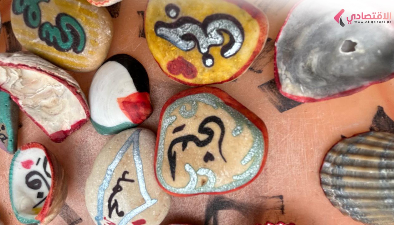 ويجمع بعض الشباب خزف وحجارة البحر وينقلونها إلى أماكن تجمع النازحين خصوصا في الأسواق التي تشكلت مؤخرا، ليرسموا عليها بعض الرسومات بألوان زاهية ومعالم حياة جميلة أو يكتبوا عليها بعض الأسماء بخطوط وأشكال فنية متعددة بناء على طلب الزبائن.