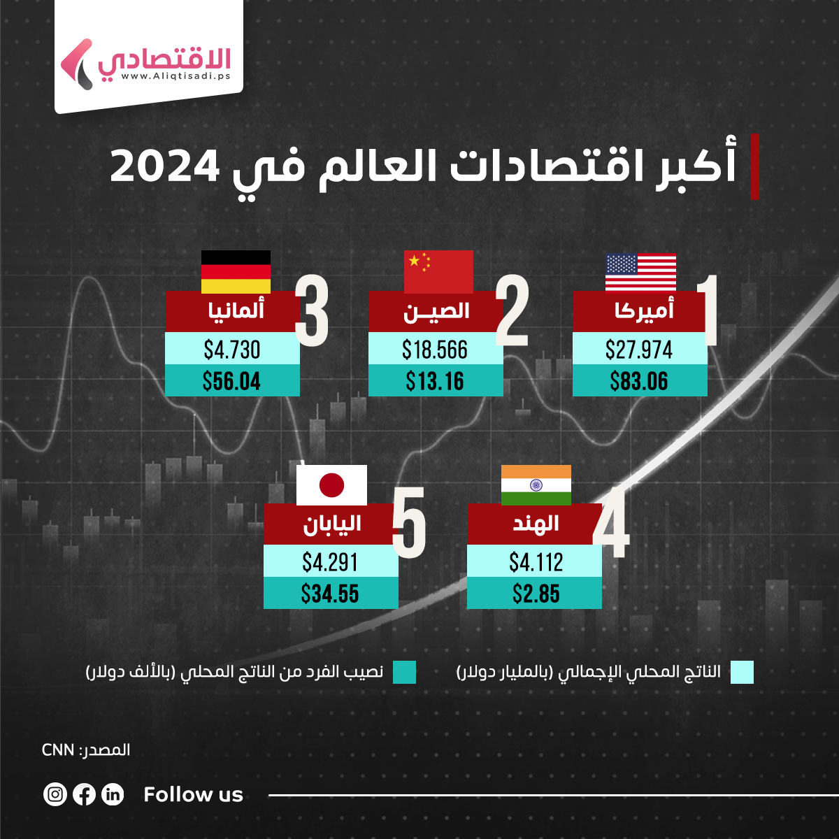 الاقتصادي: الولايات المتحدة الأميركية تواصل تصدرها لأقوى اقتصادات العالم.