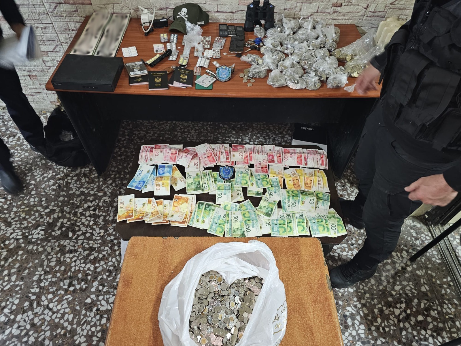 وأثناء تفتيش منزله تم العثور على 5 مركبات فارهة، أفاد بأنها تعود له ولأخيه الذي يعمل معه في التسول والذي تم القبض عليه لاحقا، كما تم ضبط حقيبة بداخلها مبلغ 8000 شيكل من العملات المعدنية، و22 ألف شيكل من العملات الورقية أفادا بأنهما قاما بجمعها من التسول الذي يمارسانه يوميا ، كما تم ضبط 29 حبة من نوع لاريكا، و12 حبة ترامال، ولوحات مركبات فلسطينية.