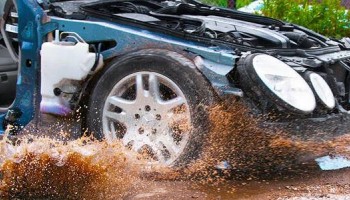 شاهد ما يحدث عندما تقع السيارة في بركة ماء على الطريق