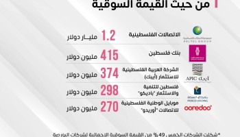أكبر 5 شركات في بورصة فلسطينن من حيث القيمة السوقية
