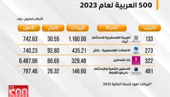 4 شركات فلسطينية في قائمة فورتشن 500 العربية لعام 2023